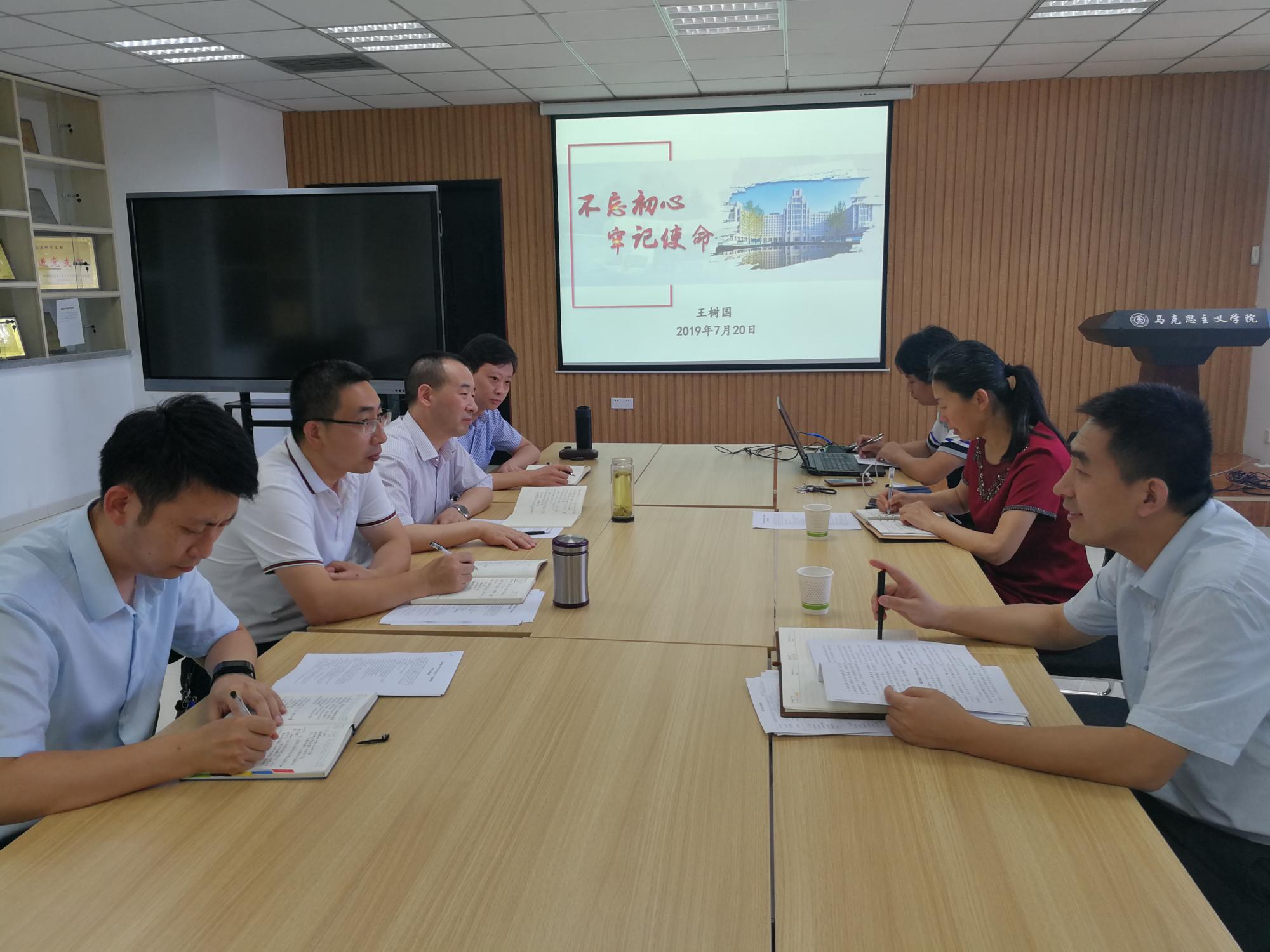 落实暑期工作会议精神提出以下几点要求。第一,要统一思想认识,全院上下要认真学习书记校长重要讲话精神,统一全院师生思想,增强紧迫感,抓住机遇,应对挑战;第二,要明确发展目标,围绕学科评估指标任务,凝练学科方向,找准突破口,着力建设马克思主义与治国理政研究院;第三,要找准发展路径,放宽眼界,提高洞察力,对比其他重点马院,找到学科发展的着力点;第四,要营造发展氛围,加强思想文化建设,坚定理想信念,守初心,担使命,团结带领师生努力拼搏前进。