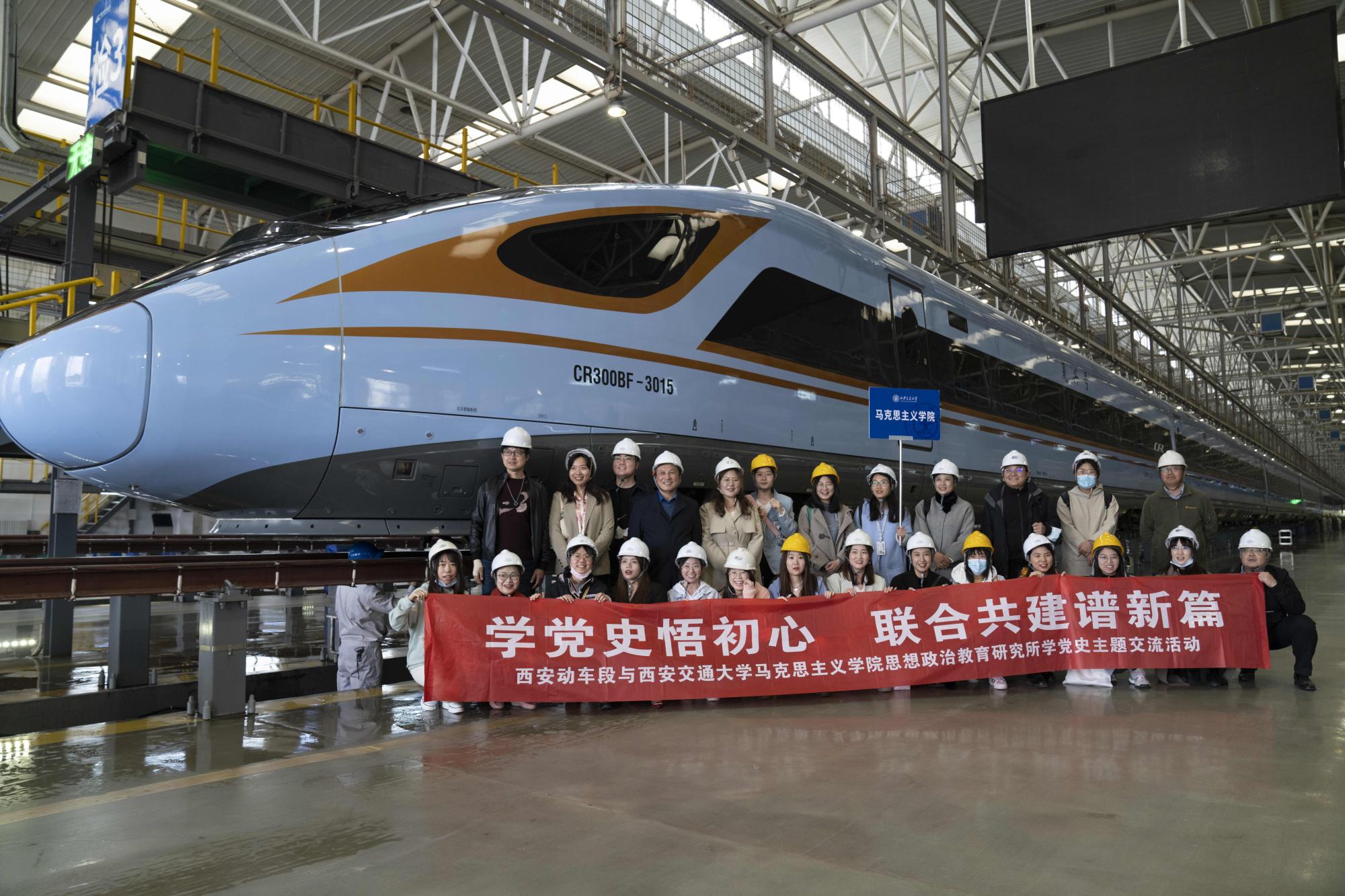 行政党支部、硕9114党支部前往西安动车段参观交流,举行以“学党史悟初心、联合共建谱新篇”为主题的党日活动,思政所党支部与西安动车段西成运用车间党总支签订合作共建协议。