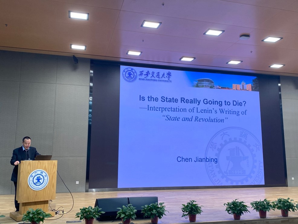 陈建兵教授作了题为“‘国家’真的会消亡吗?——列宁《国家与革命》解读(Is the State Really Going to Die: Interpretation of Lenin’s Writing of State and Revolution)”的报告。陈教授从《国家与革命》的写作过程和背景出发,提出马克思主义国家学说拨开了国家问题研究上的“迷雾”。列宁在《国家与革命》中深刻阐释了国家起源、国家性质、国家职能、无产阶级专政国家、以及国家消亡等理论,对马克思主义国家学说发展具有重要的当代价值。