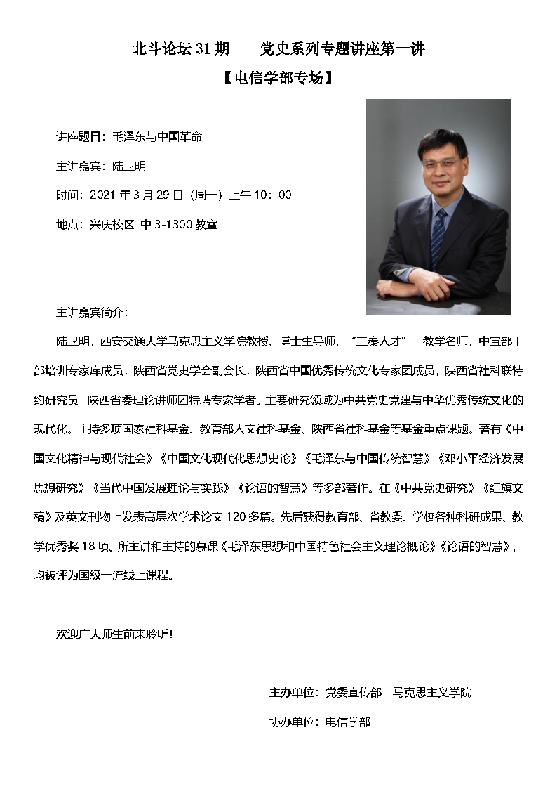 【讲座预告】北斗论坛31期----党史系列专题讲座第一讲【电信学部专场】