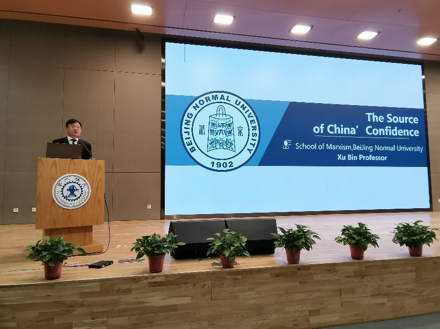 徐斌教授作了题为“中国为什么自信——如何看中国特色社会主义(The Source of China’s Confidence: How to Understand Socialism with Chinese Characteristics)”的学术报告。他认为,在迈向全面建设社会主义现代化强国新征程中,中国的自信源自于我们开辟并建构的中国道路、中国理论、中国制度、中国文化以及为世界提供的中国方案之中,这不仅让我们对历史倍感自豪,更让我们对未来充满期待。