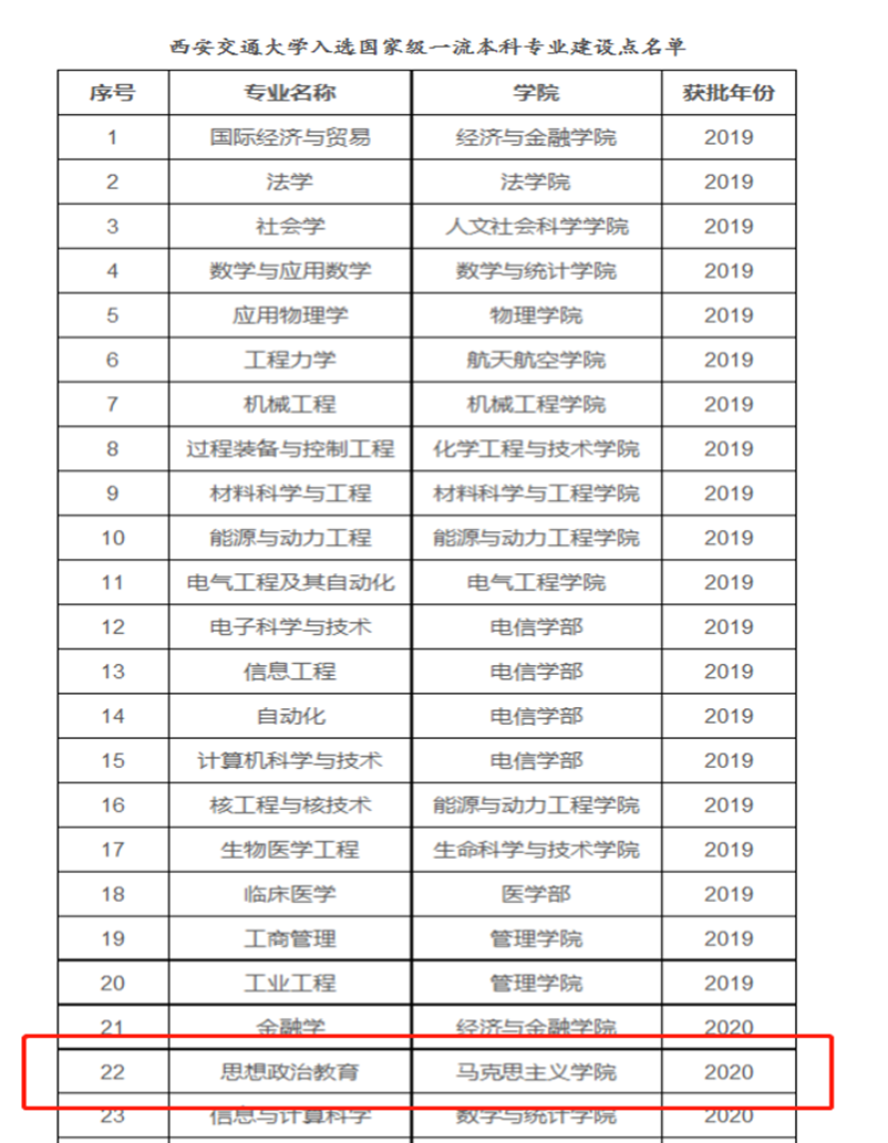 近日,根据教育部发布的《教育部办公厅关于公布2020年国家级和省级一流本科专业建设点名单的通知》(教高厅函〔2021〕7号),我院思想政治教育本科专业获批国家级一流本科专业建设点。