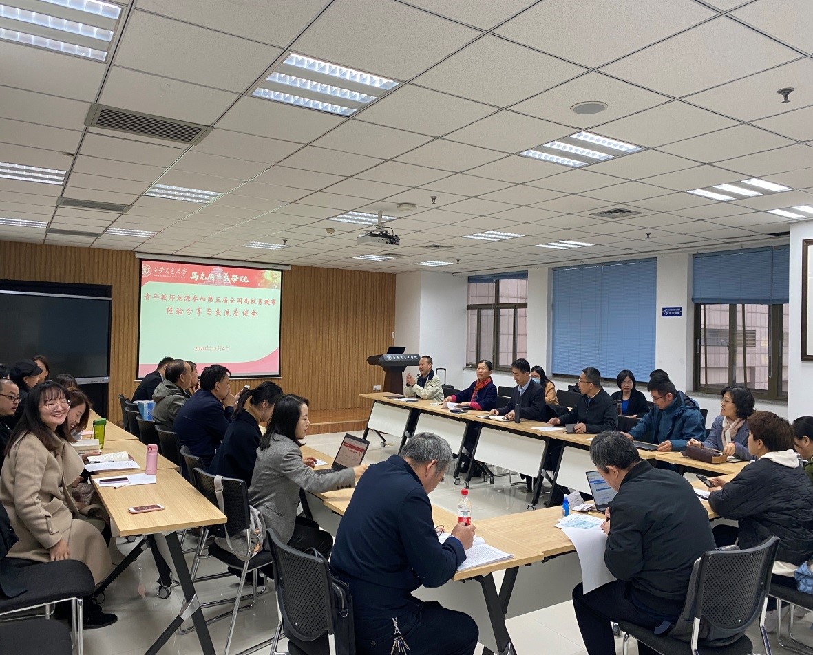 在兴庆校区主楼E505举行了青年教师刘源参加全国第五届青教赛经验分享与交流座谈会。苏玉波书记、燕连福院长、马忠副院长、系所领导与青年教师参加了座谈交流会。交流座谈会由陈建兵副院长主持。