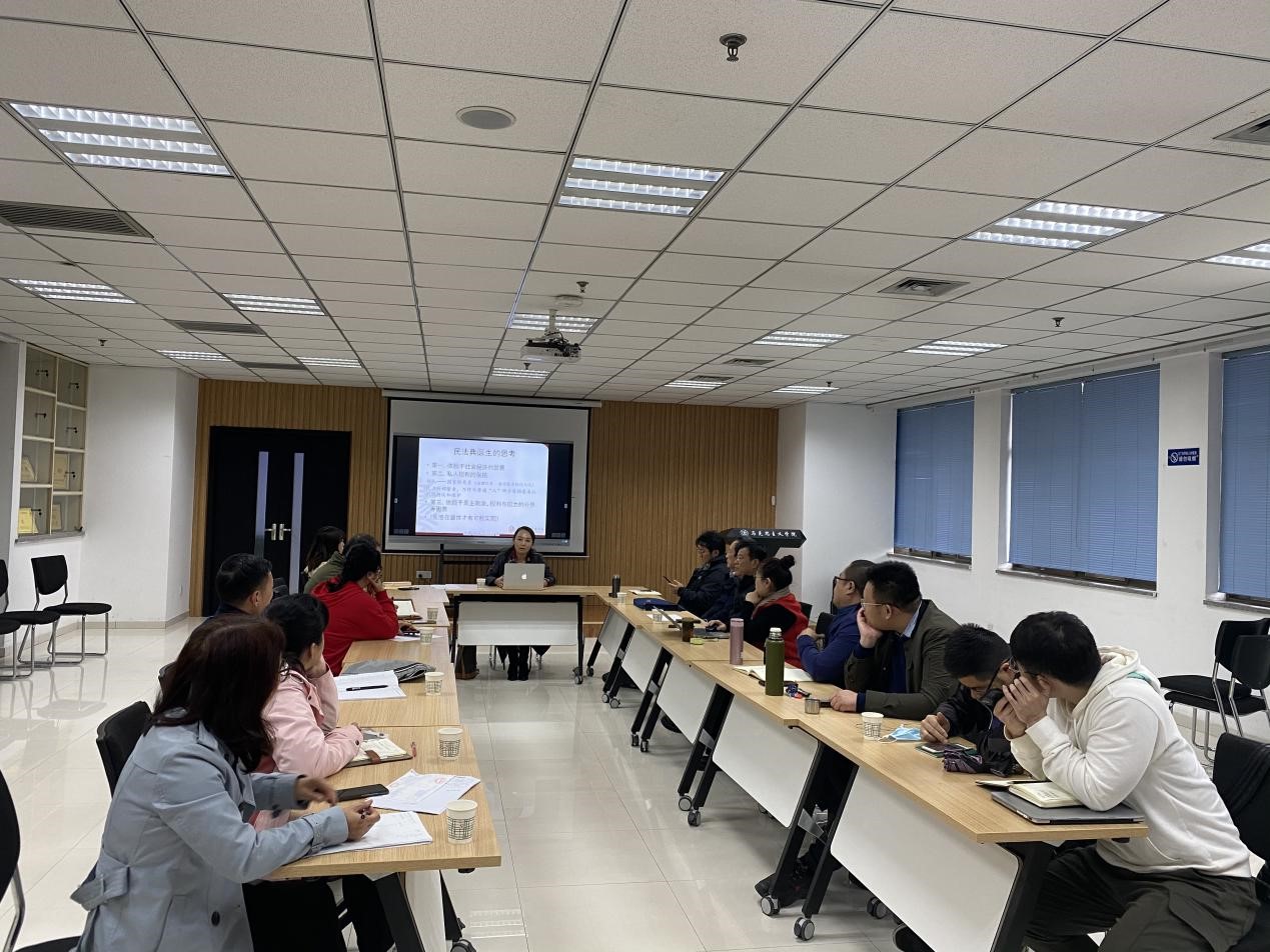 副教授、博士生导师薛华作了题为“《民法典》与民事权利保护”的专题讲座。思政所全体教师以及外聘教师参加了现场备课会,来自福建商pg娱乐城