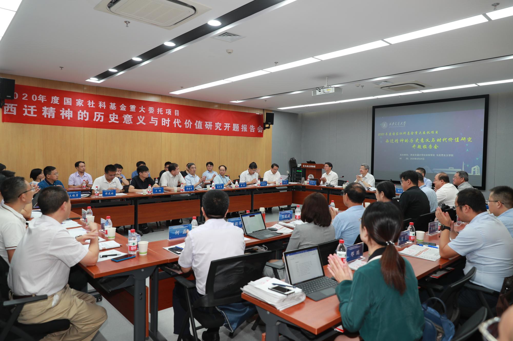 8月29日,由西安交通大学党委书记、首席专家张迈曾教授主持的2020年度国家社科基金重大委托项目“西迁精神的历史意义与时代价值研究”开题报告会在兴庆校区交大西迁博物馆报告厅顺利召开。陕西省委宣传部副部长程宁博,延安市市委常委、宣传部部长柯昌万,西安交通大学党委副书记宫辉,西安交通大学副校长席光,西安交通大学党委常委、组织部部长柴渭,西安交通大学党委常委、宣传部部长成进,西安交通大学社会科学处处长贾毅华出席开题报告会,课题组成员、师生代表40余人参加会议。
