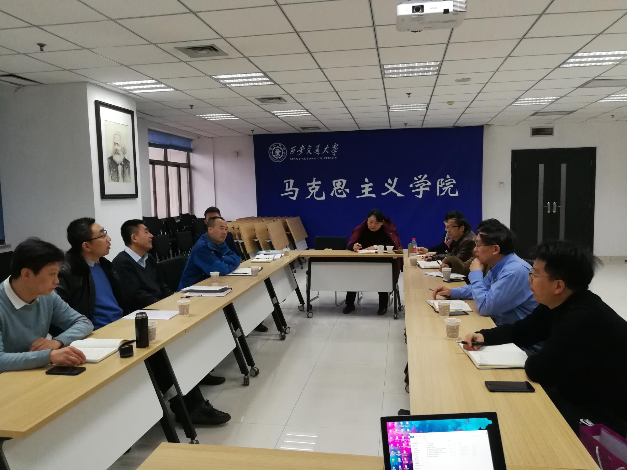 院长燕连福,副院长陈建兵、马忠、韩锐,党委副书记邢鹏,思政所所长杨华,历史所所长马金玲,马发所所长郑冬芳,外马所所长宋永平,中马所副所长田建军,马原所支部书记樊晓燕参加会议。