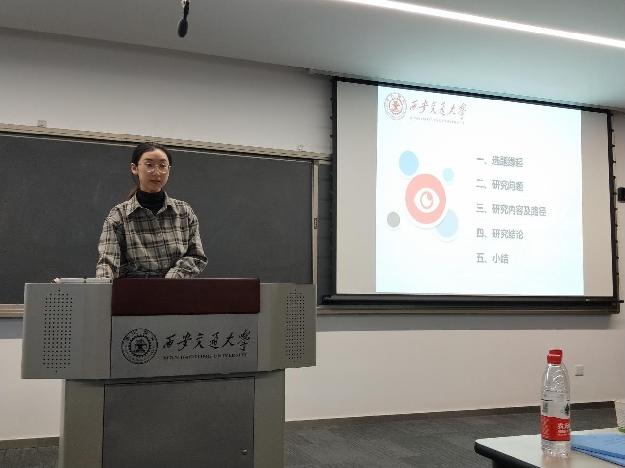 博士研究生王含阳作题为《新媒体环境下社会思潮的传播形态与趋势预测》的报告。本次论坛由副院长韩锐主持,部分教师及研究生聆听了报告。