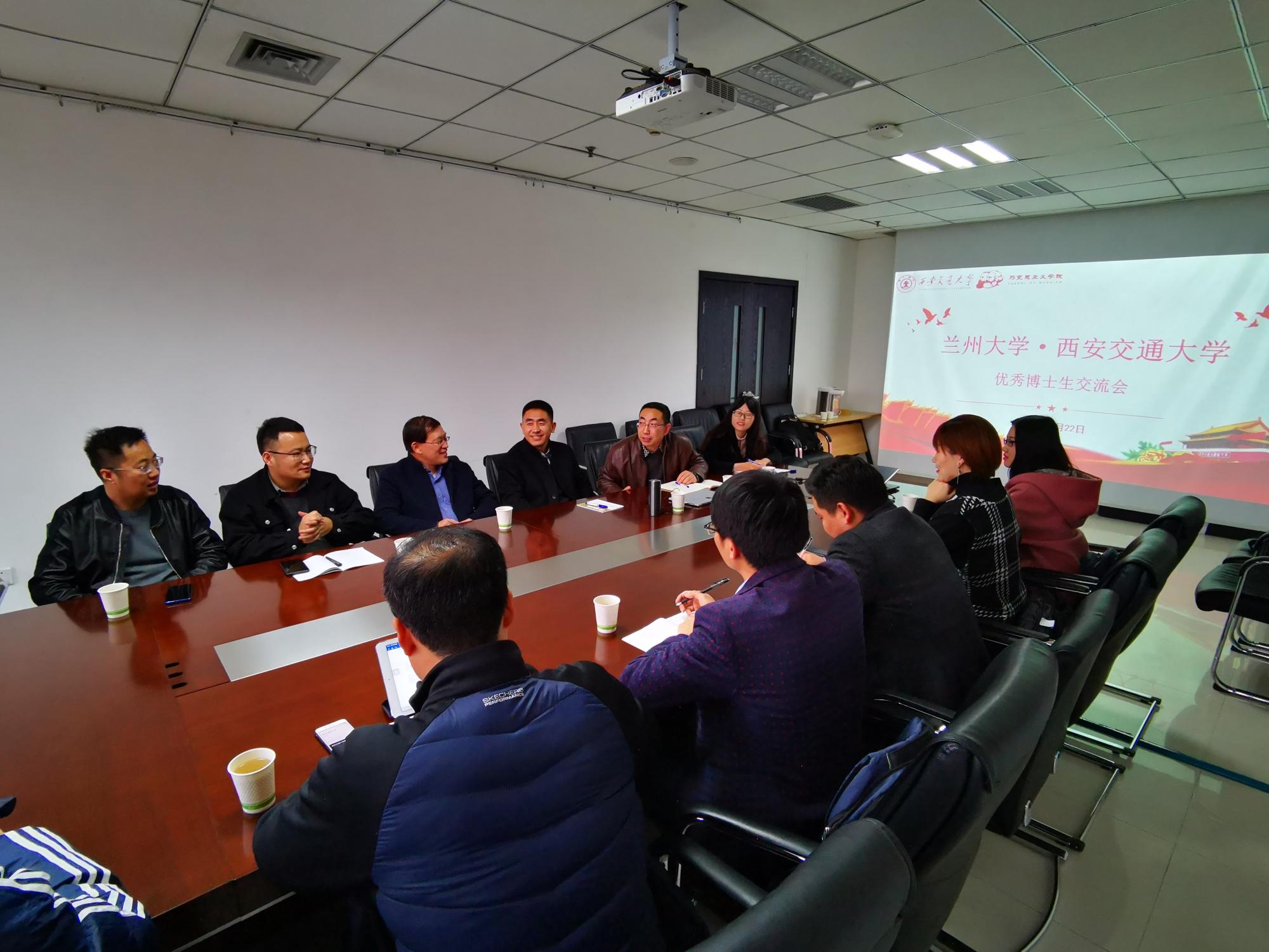 优秀博士生团队来我院交流学习表示热烈欢迎。他指出,兰州大学和西安交通大学均属西部重点建设马院,地域相近,文化相似,西安交通大学提倡“西迁精神”、坚持“爱国奋斗”,兰州大学提倡“爱国坚守奋斗”精神,两所高校、两所马院具有密切的学术交流渊源,希望共同建设得越来越好。